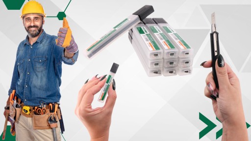 ➡️ Zestaw NÓŻ z ostrzem łamanym + 10 opakowań ostrzy łamanych 9mm - 100 sztuk
