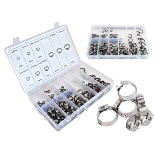 Opaski zaciskowe z pojedynczym uchem wykonane ze stali nierdzewnej. Znajdują zastosowanie do wielu prostych połączeń zespołów węży. Prosta i optymalna konstrukcja opaski zaciskowej z jednym uchem powoduje, że są one odporne na ingerencję po ich zamontowaniu. Połączenie jest trwałe i bezpieczne. Zastosowanie zaokrąglonych krawędzi jest bezpieczne dla węży / przewodów i nie powoduje uszkodzeń zaciskanego przedmiotu. Opaski zaciskowe z pojedynczym uchem umożliwiają łatwy, szybki i bezpieczny montaż.