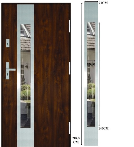 • drzwi z blachy pokrytej folia dekoracyjną PCV pasującą do stolarki okiennej ,