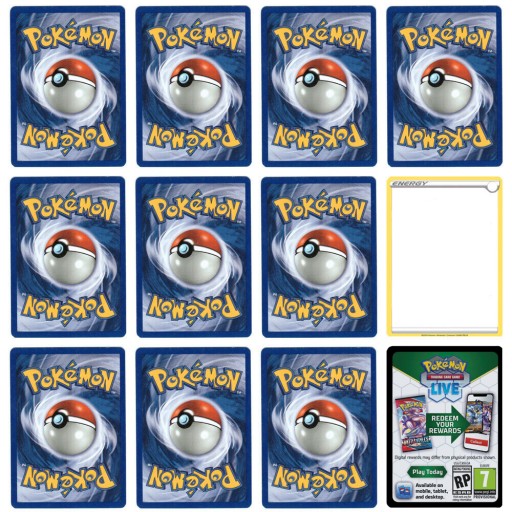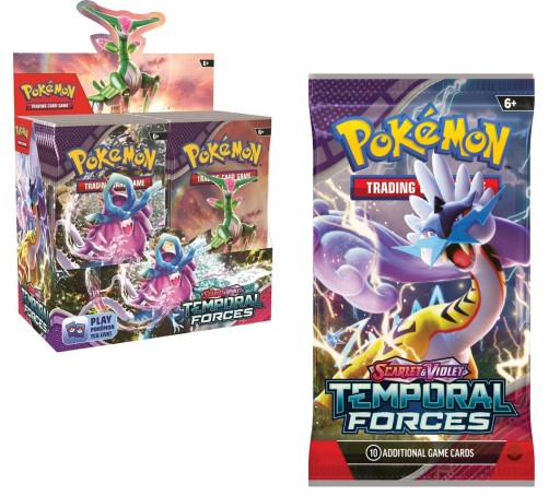 Zawartość saszetki: 10 kart z dodatku Temporal Forces plus 1 karta energii dodatkowo w saszetce znajduje się karta z unikalnym kodem, który pozwoli otworzyć booster w wersji online Pokemon TCG Live