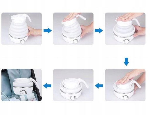 NASZ CZAJNIK ELEKTRYCZNY O POJEMNOŚCI 600 ML WAŻY 720 G I MA SKŁADANĄ KONSTRUKCJĘ, DZIĘKI CZEMU JEST BARDZO WYGODNY I LEKKI, OSZCZĘDZAJĄC DUŻO MIEJSCA PODCZAS PAKOWANIA.