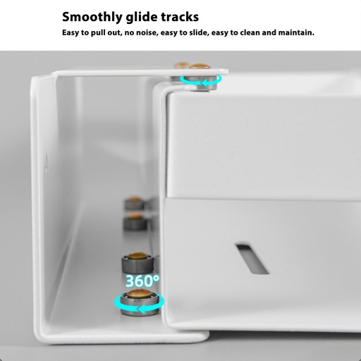 2. PŁYNNE PROWADNICE PRZESUWANIA: Wyposażony w płynnie i cicho przesuwające się tory, organizer bez wysiłku wsuwa się i wysuwa, dzięki czemu czyszczenie i konserwacja są proste.