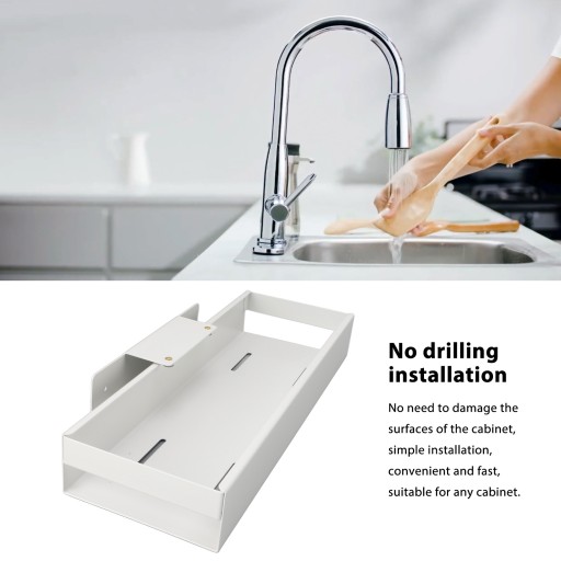 3. MONTAŻ BEZ WIERCENIA: Dzięki prostemu procesowi instalacji, który nie wymaga wiercenia ani uszkadzania powierzchni szafki, organizer można łatwo zainstalować w dowolnej szafce.