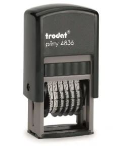 Datownik 4810 i Numerator samotuszujący Trodat 4836 z serii Printy w eleganckiej obudowie wyprodukowanej z odzyskanego plastiku oraz przy zmniejszonej emisji CO2. Przydatne w każdym biurze do stemplowania korespondencji firmowej, potwierdzenia odbioru gotówki, dostawy towaru itp. Datownik dostępny z datą w wersji ISO oraz polskiej. Wysokość cyfr/liter 4 mm. Numerator 6-cio cyfrowy. Wysokość cyfr 3,8 mm