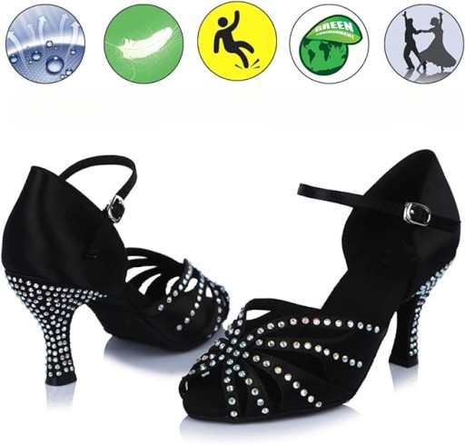- ❤️Materiał zewnętrzny: wykonany z wysokiej jakości skóry syntetycznej/satynowej, podeszwa jest zamszowa, miękka, wygodna i antypoślizgowa, najlepszy wybór do treningu tanecznego i występów.