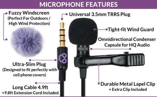 Набор петличных микрофонов Purple Panda с зажимом на микрофоне Lav Mic