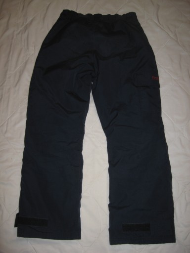 Towar jak na zdjęciu, stan dobry, posiadają przejaśnienia na kolanach i tyłku, gumy w ściągaczach częściowo się łuszczą, do założenia od zaraz. Towar wysokiej jakości, materiał solidny, wytrzyma długi czas, w środku ocieplenie, metka oryginał renomowanego producenta odzieży narciarskiej Five Seasons, rozmiar z metki S, skład materiału zewnętrznego 65% poliester, 35% bawełna, skład podszewki 100% poliester, posiadają trzy kieszenie, w tym dwie zapinane na zamki, w nogawkach fartuchy przeciwśnieżne, więc nadają się do jazdy na nartach, u dołu nogawek rzepy regulujące szerokość, porządna wykończeniówka, nie chińszczyzna z marketu. Długość boku 102cm, długość od kroku 75cm, pas 74-82cm. ^ /