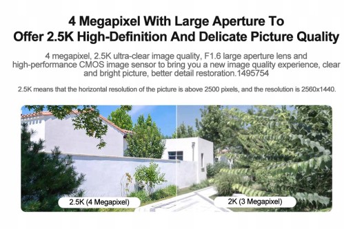 - ☑️ Obraz o rozdzielczości 2,5K zapewnia niezwykle wyraźne detale, podczas gdy ultrawyraźny obraz 4 MP i 2,5K dostarczają wysoką jakość dzięki obiektywowi o dużej przysłonie f/1.6 i przetwornikowi obrazu o wysokiej wydajności.
