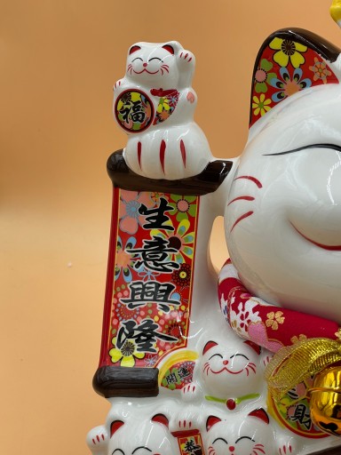 PRZYNOSI SZCZĘŚCIE – kotek chiński uważany jest za symbol szczęścia, bogactwa i powodzenia w interesach. Strzeże swojego właściciela, odstrasza z jego domostwa lub biura złe duchy i przyciąga samych przyjaciół i osoby pozytywnie nastawione. Posiadanie Maneki-neko to według wierzeń zapewnienie pomyślności.