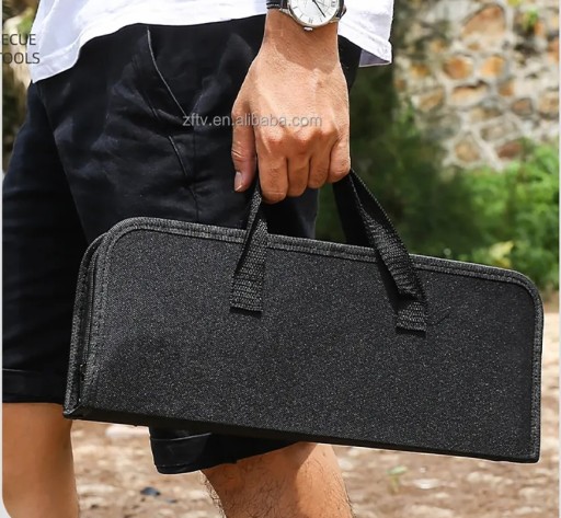 Zestaw akcesoriów grillowych wyposażony jest w delikatną płócienna torba ułatwiającą przechowywanie. Torba wyposażona w rzepy ułatwiające utrzymanie porządku.