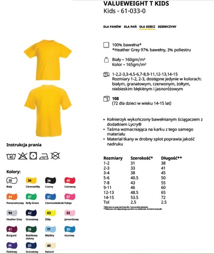 KOSZULKI DOSTĘPNE WE WSZYSTKICH ROZMIARACH od S do 3XL ORAZ ROZMIARY JUNIOR od 110 cm do 152 cm