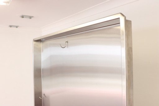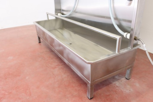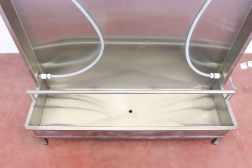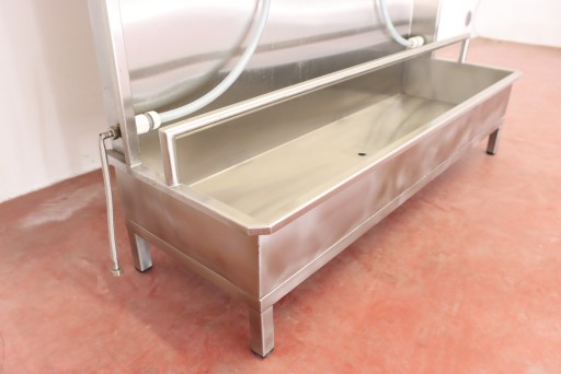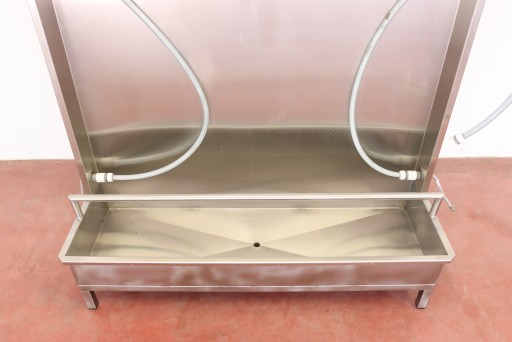 mamy do sprzedania ściankę do płukania odzieży masarniczej (i nie tylko - można zastosować do innych punktów, w których wymagane jest codzienne spłukiwanie/czyszczenie odzieży roboczej). Ścianka była używana, posiada niewielkie ślady użytkowania.