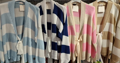 - Wyjątkowy oversize kardigan. Zapinany na ozdobne, wiązane wstążki.