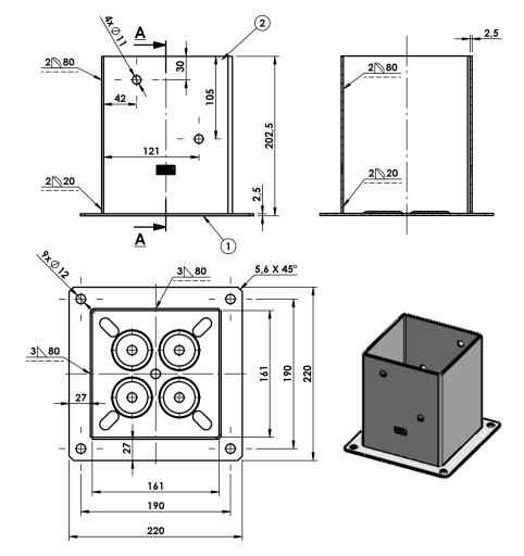 Podstawa słupa PSP 160mm o grubości 2,5 mm