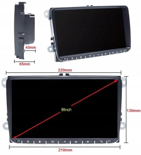 Radio Samochodowe 2DIN, Android 13.0 ekran 9" cali, Procesor Ośmiordzeniowy + 2 GB Pamięci RAM, do Volkswagen, Seat, Skoda