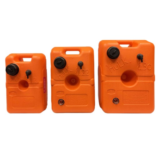 Przenośne zbiorniki paliwa Nuova Rade służą do przechowywania oleju napędowego lub benzyny przed jej przesłaniem do silnika łodzi w wygodniejszy sposób. Linia przenośnych zbiorników paliwa do silników zaburtowych HULK wykonana jest z bezzapachowego polietylenu o dużej gęstości w kolorze czerwonym. Ich solidna konstrukcja z tworzywa sztucznego, która jest osadzana obrotowo, sprawia, że są całkowicie odporne na korozję. Są mocne, a jednocześnie lekkie i nie pękają ani nie wgniatają się. Materiał polietylenowy jest używany, ponieważ nie rdzewieje i ma dłuższą żywotność, w przeciwieństwie do zbiorników metalowych. Linia zbiorników paliwa HULK składa się z pełnowymiarowej gamy 12L, 22L i 30L, zgodnej z międzynarodowymi normami i służy do zbierania i przechowywania paliw. Wszystkie zawierają wylot Ø 8 mm.