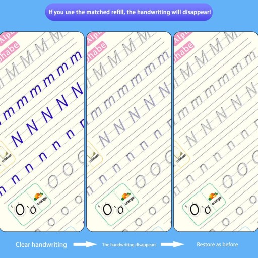Wielokrotnego użytku: książeczka z magicznymi literami dla dzieci Pismo odręczne zniknie w ciągu 10 minut po napisaniu, dzięki czemu zeszyt do pisania będzie mógł być używany wielokrotnie. Zeszyt do ćwiczeń pisma ręcznego z wkładem do ołówka. Kursywa angielska może być ponownie wykorzystana. Książka praw autorskich Slotted Magic