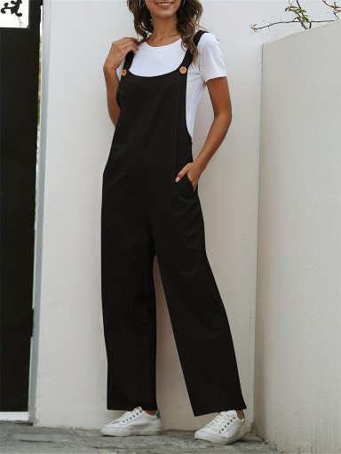 Однотонный комбинезон без рукавов, гладкий комбинезон на длинных штанинах.