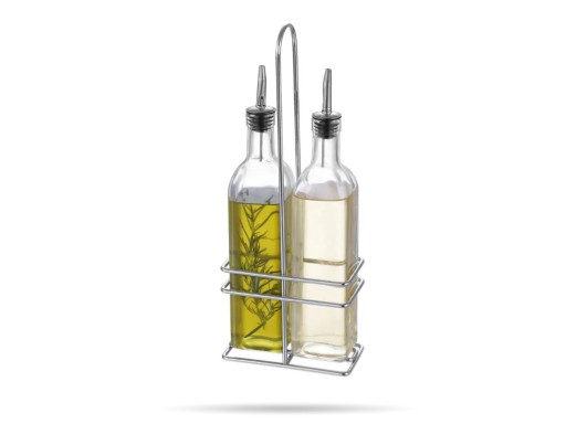 Chromowany uchwyt 2 butelki na ocet/oliwę z nalewakiem ze stali nierdzewnej