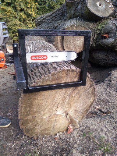 Mam do sprzedania bardzo solidny uchwyt do cięcia plastrów drewna. Trak zrobiony jest z profilu zamkniętego o wymiarach 30x30x15mm. Jest to bardzo przydatne narzędzie do precyzyjnego wycinania plastrów z bali drewnianych w domowych warunkach. Minimalna grubość plastra to 15mm, natomiast maksymalna grubość to 30cm. Waga urządzenia to około 3kg.