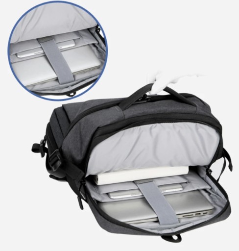 Wygodne zewnętrzne wejście na kabel (USB) oraz wewnętrzy kabel do podłączenia power banka umożliwia łatwe ładowanie urządzeń mobilnych, dzięki podłączeniu do power banka (nie wchodzi w skład plecaka). Teraz możesz ładować swój telefon lub tablet w drodze na lotnisko bez problemu!