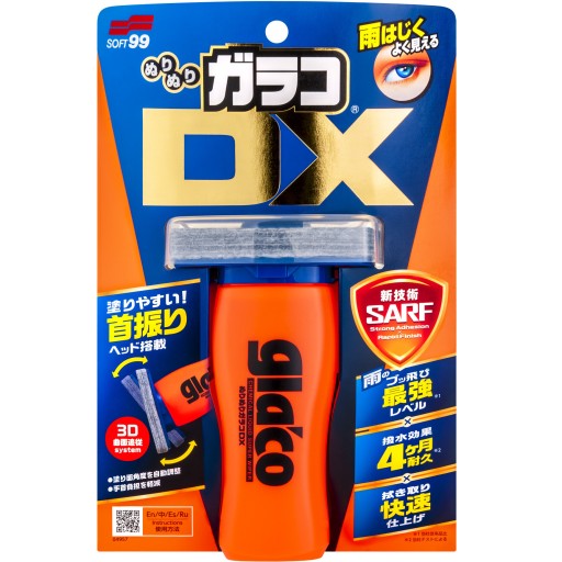 Glaco DX wykorzystuje nowo opracowaną technologię SARF (Strong Adhesion + Rapid Finish), dzięki której czas wiązania produktu z szybą został skrócony do zaledwie 5 minut, polerowanie pozostałości stało się bajecznie proste, a siła wiązania gwarantuje trwałość aż do 4 miesięcy.