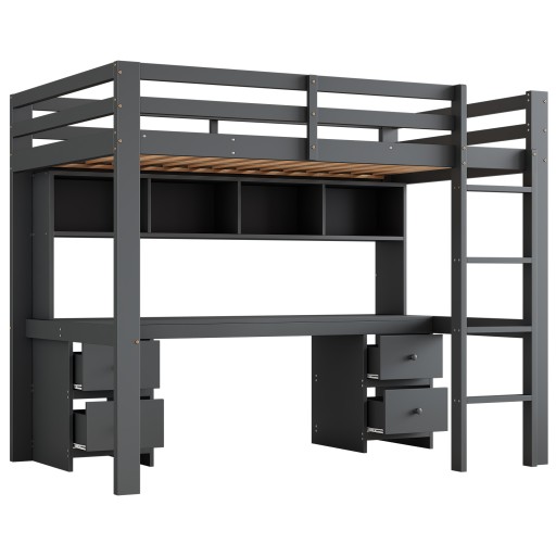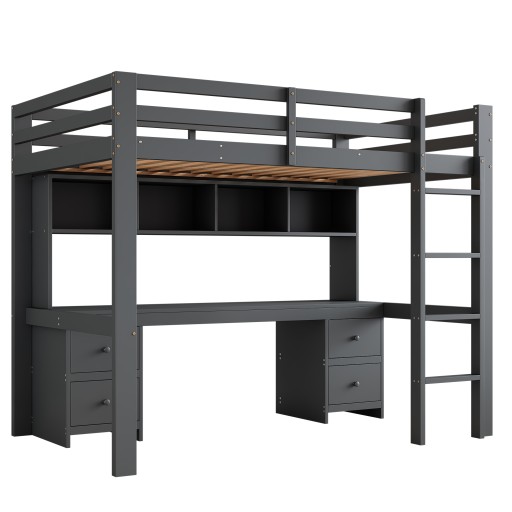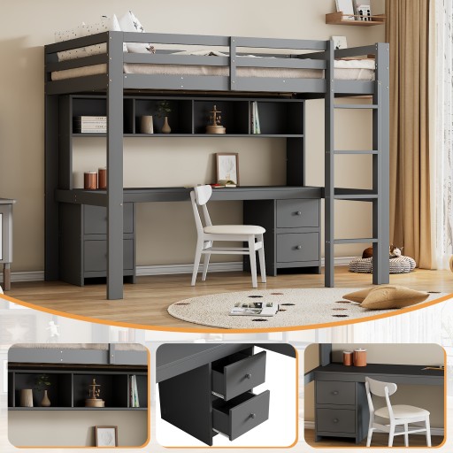 Łóżko na antresoli 90*200cm, łóżka dziecięce, łóżko górne, stolik dolny, duża przestrzeń do przechowywania, wysoka poręcz, stabilne schody, szary