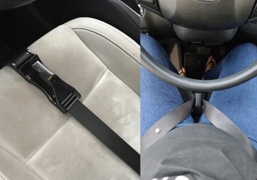 - Adapter pasów bezpieczeństwa pozwala zapinać pasy w samochodzie, aby nie uciskały brzucha w czasie jazdy.