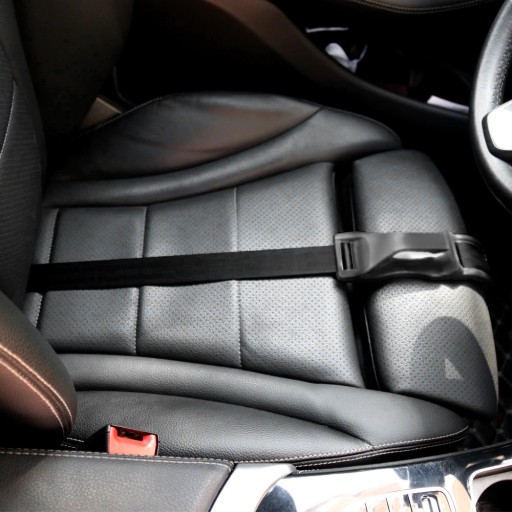 - Ustaw długość pasa, tak aby haczyk znajdował się na brzegu fotela.