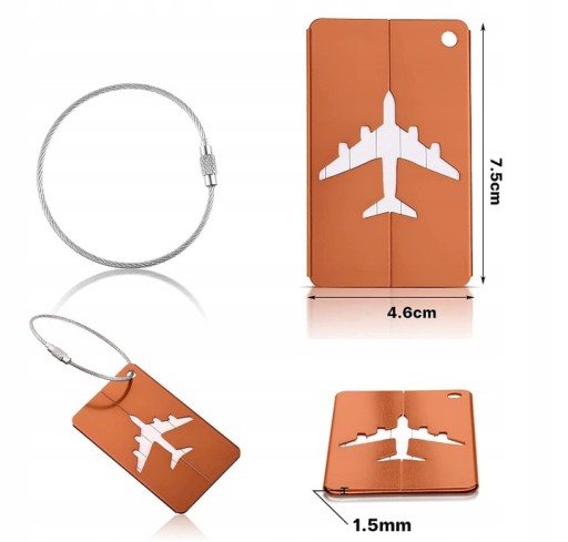 Zawieszki na bagaż wykonane są z cienkiego metalu dzięki temu są wytrzymałe. Dodatkowo zaczep mocujący wykonany jest z aluminiowej linki.
