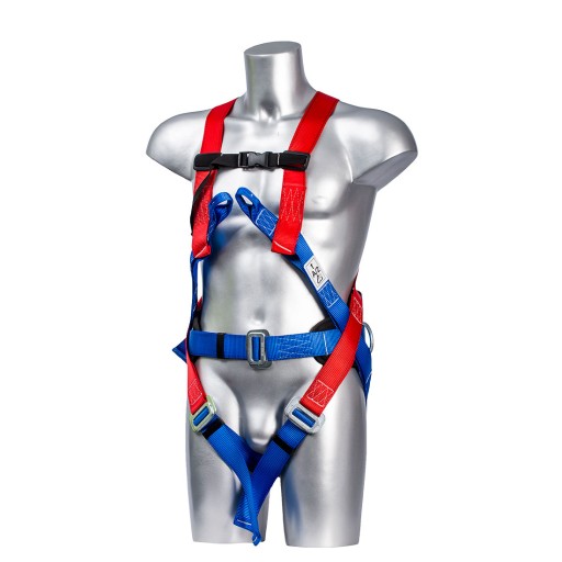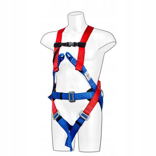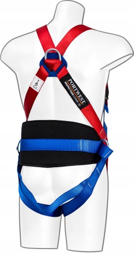 - Ergonomiczna uprząż do pracy na wysokości z przesuwanym grzbietowym D-ringiem.