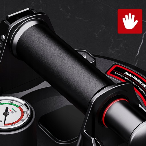 - Ręczna pompa próżniowa z manometrem jest łatwo uruchamiana jednym palcem i jest wyposażona w znak bezpieczeństwa, który wskazuje na utratę ssania (czerwony znacznik) i przypomina nam o konieczności ponownego pompowania w celu utrzymania obciążenia próżniowego w przyssawce.