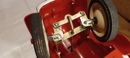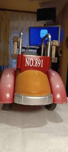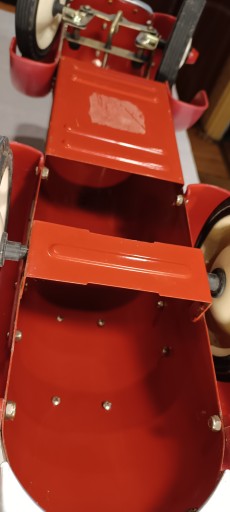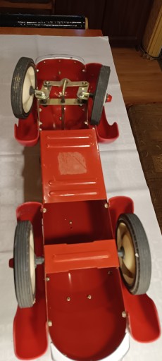 Samochód jest przystosowany do jazdy dla dzieci odpychając się nogami. Rok produkcji prawdopodobnie lata '70.