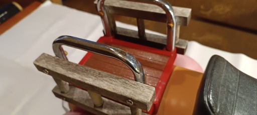 Stan wizualny dobry. Normalne ślady upływu czasu. Plastiki trochę wypłowiałe. Brak uszkodzeń oraz rdzy. Koła skręcają.