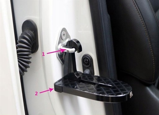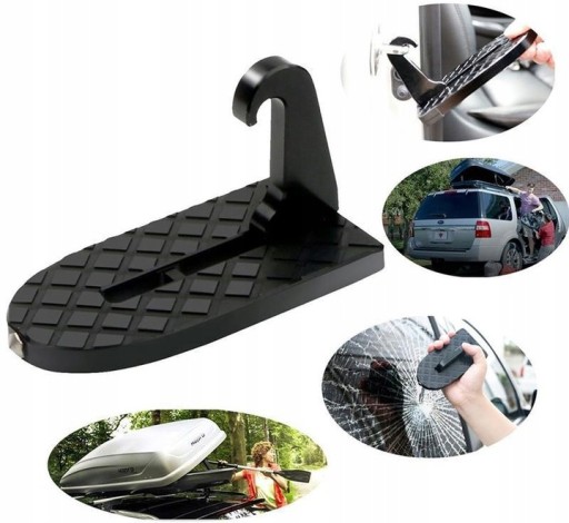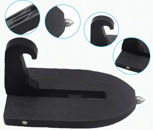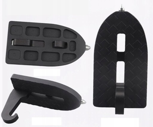 ✅Dodatkowym atutem tego schodka jest wbudowany stalowy kolec który może służyć jako młotek bezpieczeństwa do zbijania szyb w samochodzie w razie potrzeby.