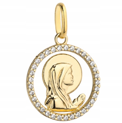Złota zawieszka MATKA BOSKA W KOLE Z CYRKONIAMI 585