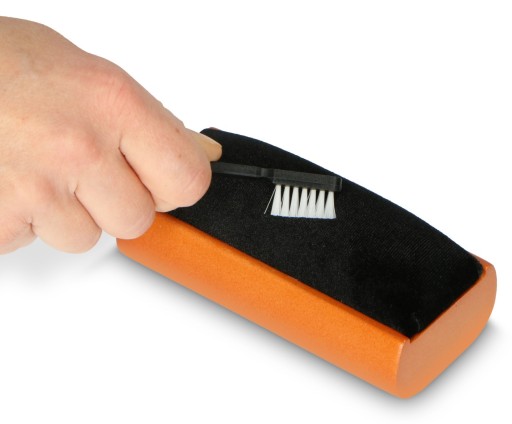 Lenco TTA-5in1 składa się z drewnianej szczotki o aksamitnym wykończeniu do czyszczenia winylu,