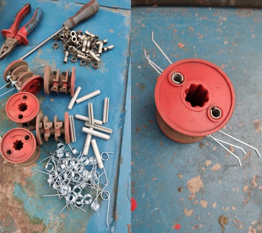 Najprostsza metoda to usunięcie starej zaprasowanej tulejki (np. przecinając ją w połowie długości) i zastąpieniu jej nową ( dostępne na moich aukcjach- koszt 1 szt/1 zł na komplet potrzeba 10/12szt ), ponieważ tulejka jest odrobinę grubsza należy otwór poszerzyć wiertłem fi 8,5 lub tulejkę lekko ścisnąć w imadle, zakładamy nowe sprężynki.