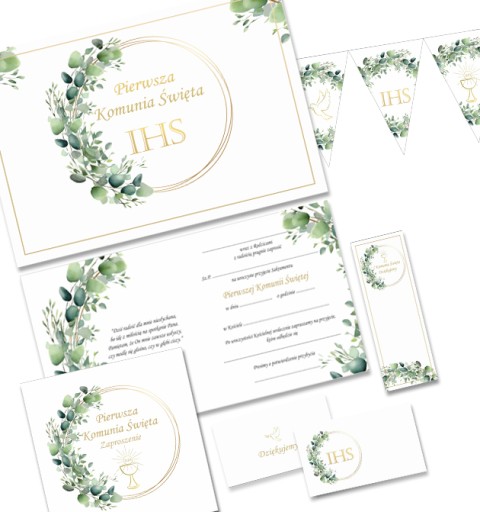 inne produkty z serii, a także szeroki wybór dekoracji komunijnych: balonów, serwetek, pudełek na ciasto oraz upominki dla gości, toperów na tort, girland, pokrowców na krzesła itp.
