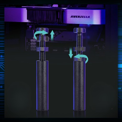 Podpórka wyposażona jest w gumową podkładkę antypoślizgową oraz ukrytą siatkę magnetyczną, które zapewniają niezrównaną stabilność i bezpieczeństwo Twojej karty graficznej. Złożona mierzy jedynie 74 mm, a po rozłożeniu osiąga 120 mm, z centralnie umieszczoną nakrętką zabezpieczającą, która dodatkowo wzmacnia konstrukcję wspornika.