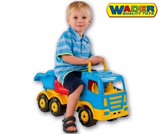 Ciężarówka, którą może jeździć nasze dziecko. Jest to możliwe dzięki jeździkowi PREMIUM-2 od firmy Polesie Wader Quality Toys. Wyposażony jest w sześć szerokich, dużych kół, które ułatwią jazdę maluchowi. Na kabinie kierowcy umieszczono specjalny uchwyt, którego może trzymać się nasza pociecha podczas podróży. Między szoferką, a kontenerem znajduje się wygodne, wyprofilowane siedzisko dla małego kierowcy. Pojemnik wywrotki również wyposażono w uchwyt. Umożliwi on uniesienie kontenera i opróżnienie go. Do przestronnej kabiny kierowcy dziecko może włożyć figurkę ulubionego bohatera.