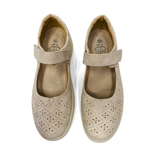 БЕЖЕВЫЕ ШИРОКИЕ ТУФЛИ ТУФЛИ НА РЕМЕШКЕ-ВЕЛКРО, ШИРОКИЕ ДЛЯ HONION 37