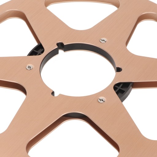 2. ANTI BENDING: Pusty kołowrotek ma aluminiowy kołnierz NAB z klasycznym otworem na wiatr Ampex z 6 otworami, zapewniającymi odporność na zginanie i dodatkową wytrzymałość.