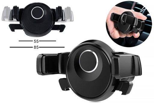 🔵 Aby zamocować telefon w szczękach wystarczy, że rozsuniesz uchwyt ściskając odpowiednie łopatki do momentu ich zablokowania. Dociśnij przycisk telefonem, a szczęki uchwytu automatycznie się zacisną!