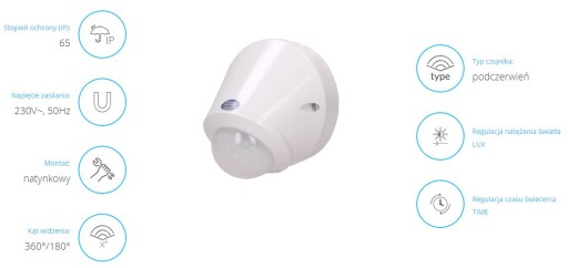 Czujnik służy do automatycznego sterowania oświetleniem lub innymi urządzeniami elektrycznymi. Potencjometry do regulacji: czasu świecenia i czułości natężenia światła. Czujnik współpracuje z oświetleniem LED-owym.