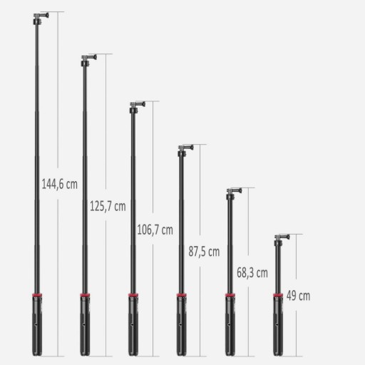 Już nie musisz nikogo prosić o zrobienie Ci zdjęcia oraz uzyskasz ujęcia z odległości większej niż zasięg ręki. Dzięki sześciostopniowej regulacji płynnie zmieniasz długość kijka w zakresie od 25 cm aż do 140 cm.