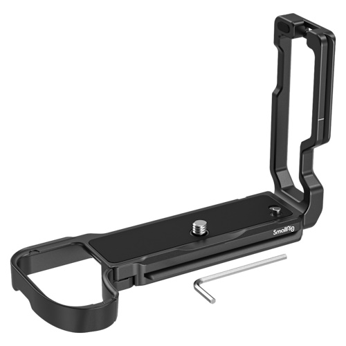 - L-Bracket posiada także mocowanie QD do zamocowania klamry paska QD, otwory gwintowane 1/4"-20 do montażu uchwytu na mikrofon SmallRig 2736, a także 23 mm regulowaną płytę boczną umożliwiającą prowadzenie kabli podczas fotografowania w trybie pionowym.