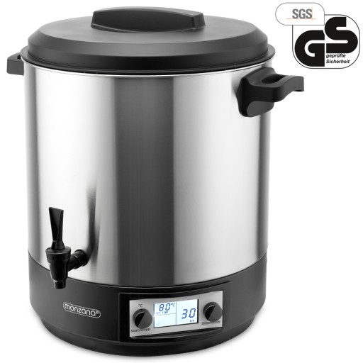 W 28-litrowym pojemniku ze zintegrowanym kranem można bez problemu zagotować do 14 słoików po 1 litrze każdy, z pokrywką typu screw top lub gumowym pierścieniem. Kranu możesz użyć do spuszczenia wody lub do nalania swoich gorących napojów.