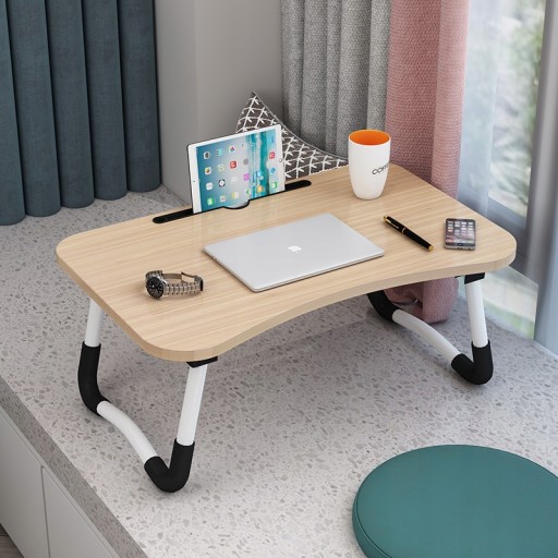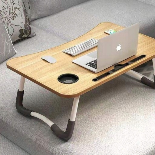 Kompaktowy stolik pod komputer lub tablet. Idealny do pracy i zabawy w domu lub podczas podróży. Umożliwia komfortowe użytkowanie laptopa czy innego urządzenia w praktycznie każdych warunkach. Po złożeniu zajmuje niewiele miejsca, można łatwo go schować np. pod łóżko i mieć go zawsze pod ręką. Wyposażony w profilowane zagłębienie na tablet lub telefon. Można też przeciągnąć ładowarkę i ładować te urządzenia jednocześnie z nich korzystając. Miękkie, antypoślizgowe zabezpieczenia nóżek zwiększa stabilność i zabezpiecza stolik.