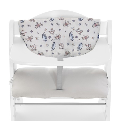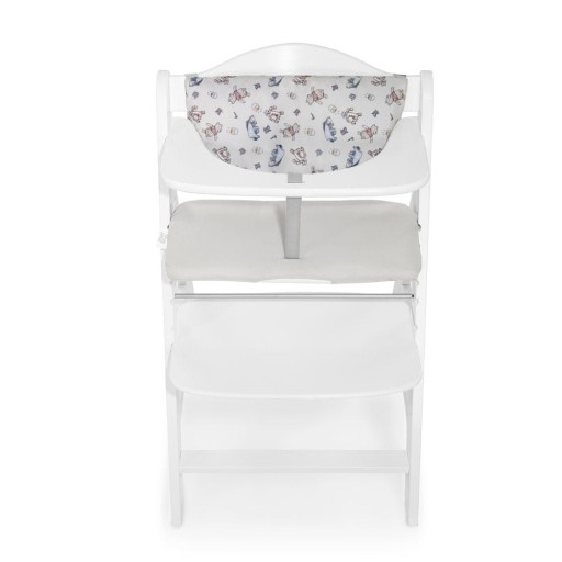 Ta dwuczęściowa poduszka "Highchair Pad Deluxe" może być wykorzystywana jako miękka poduszka lub jako podkładka na krzesełko stanowiąc doskonałe uzupełnienie drewnianych krzesełek Alpha+ oraz Beta+ lub innych krzesełek z podobnej konstrukcji. Zarówno siedzisko jak i oparcie są wykonane z wysokiej jakości wyściółki i oferują najwyższy komfort. Umożliwiają dokładne zamocowanie na dwóch typach naszych drewnianych wysokich krzesełek dla dzieci i mogą być w prosty sposób zdemontowane w celu wyprania. Podkładka na wysokie krzesełko dla dziecka dostępna jest w różnych wzorach.
